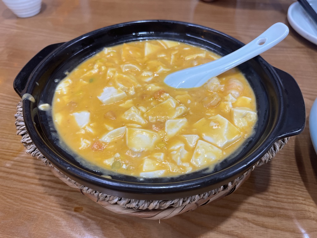 入座就送一份火龙果,西米糕,作为免费的开餐甜点非常不错。「冬阴功汤」、「爆炒空心菜」、「咖喱皇炒虾🦐」,属于必点的。虾头油豆腐煲好吃,适合白口吃,唇齿留香。
