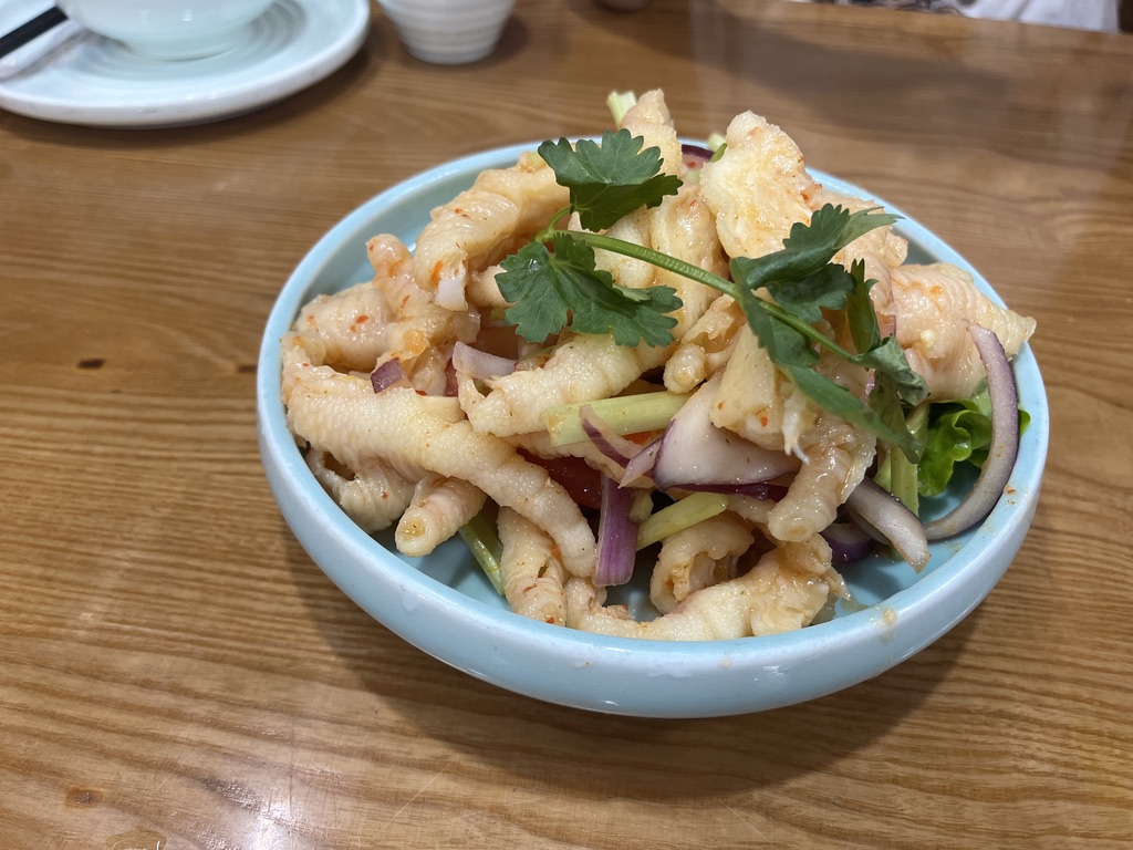 「泰式凉拌凤爪」个人不太推荐,味道不错,但是鸡肉的腥味有些重。