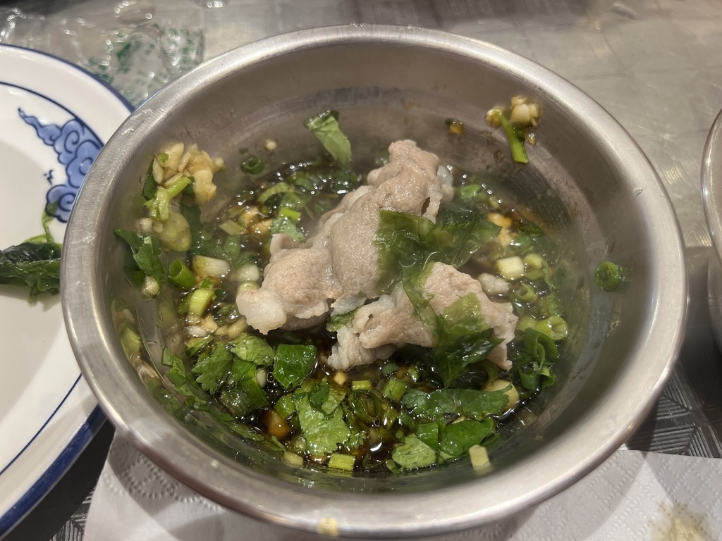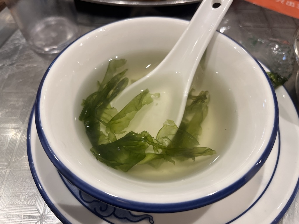 🍲清汤锅的汤底非常好喝,煮开以后,先来上两碗紫菜汤,鲜美满足。肥牛和羊肉非常好吃,裹上一层厚厚的麻酱,紧实多汁,层次丰富,手上的筷子根本停不下来。