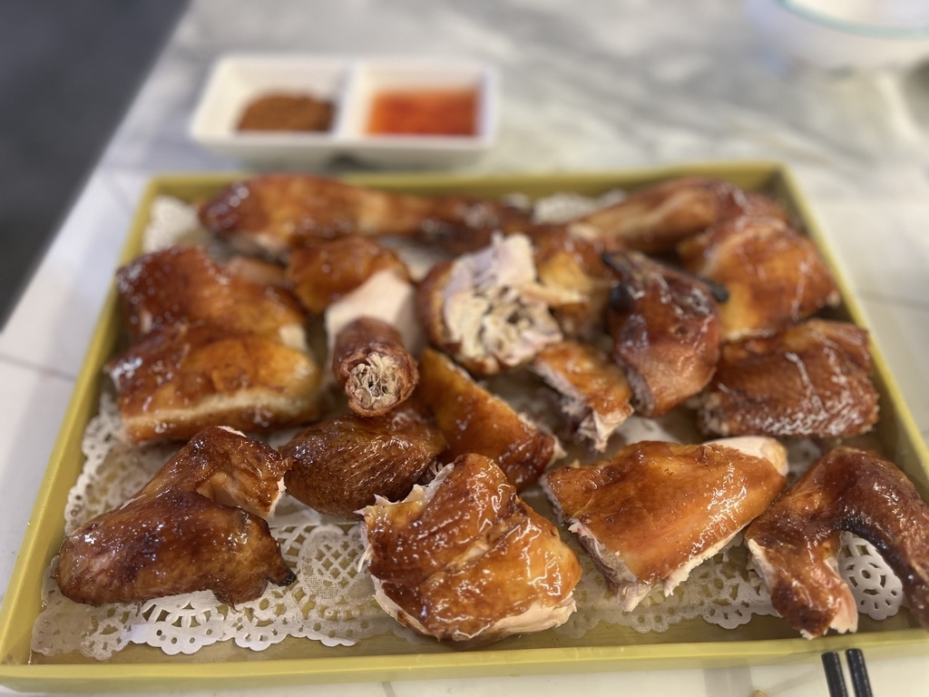 酥脆的表皮下是紧实的鸡肉 ,带着刚出吊炉的热气。拿起一块,一口下去,表皮的油脂在唇齿间绽放,紧实的鸡肉在与牙齿对抗,烦恼的食客在此刻遗忘。这一口,是满足,是幸福☺️。